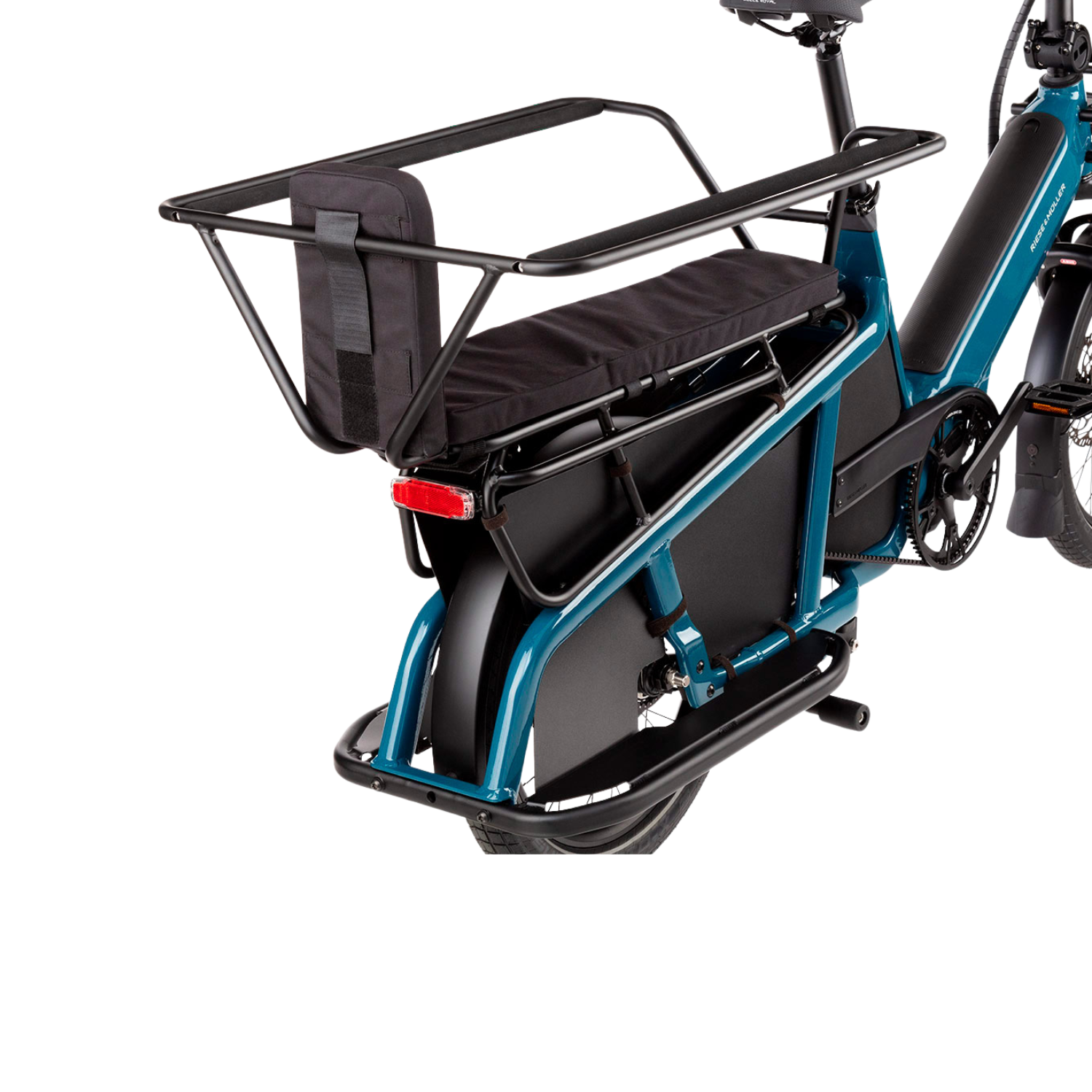 Oui, le porte-bagage est conçu pour deux enfants, avec banquette, barres latérales et repose-pieds. Le tout reste stable, même à pleine charge.