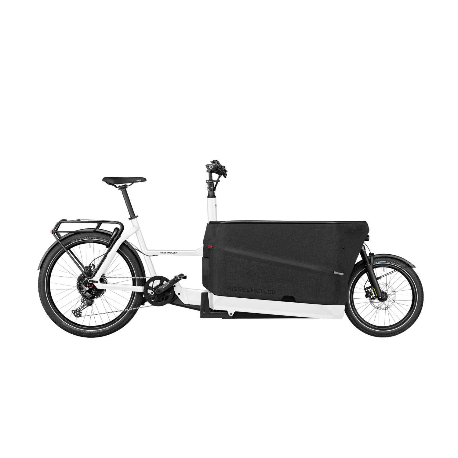 Ce modèle embarque le moteur Bosch Cargo Line Smart System, une batterie PowerTube de 625 ou 750 Wh, et une transmission Enviolo à variation continue, associée à une courroie carbone Gates. Résultat : un pédalage fluide, puissant et silencieux, sans entretien. Il dispose également d’un système de direction à câble pour une maniabilité optimale, d’une béquille renforcée et d’une large gamme d’accessoires (capote de pluie, coussins, marchepieds...).
