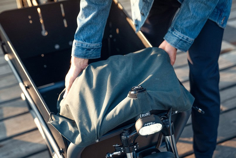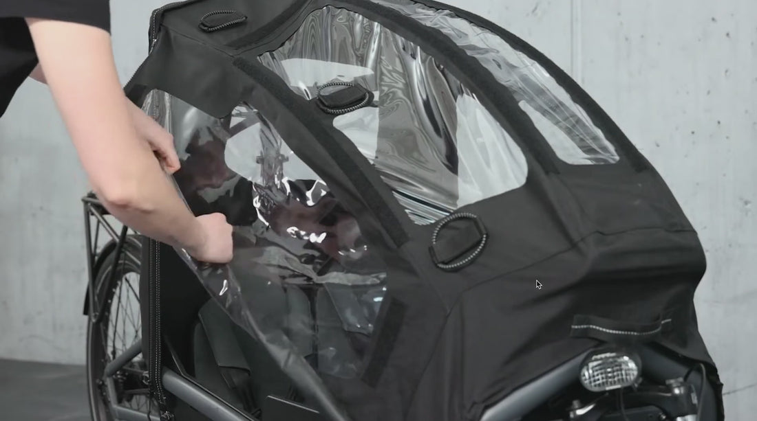 Des accessoires sont disponibles, comme la banquette 3 places, les ceintures 5 points et la capote pluie, permettant de configurer le vélo selon vos usages.