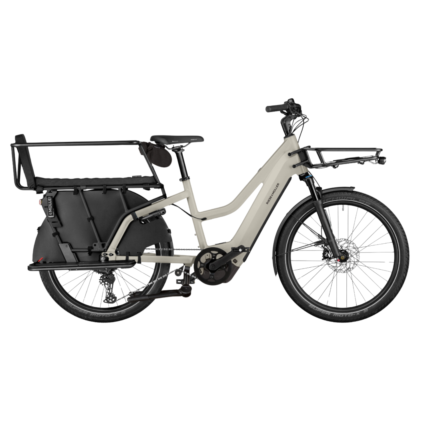 Avec son cadre rigide, sa fourche suspendue et ses freins Magura MT4/MT5, le Multicharger3 Rohloff reste stable et sûr, même avec jusqu’à 175 kg de charge utile. Son porte-bagages allongé permet d’installer deux sièges enfants ou de transporter du matériel volumineux.