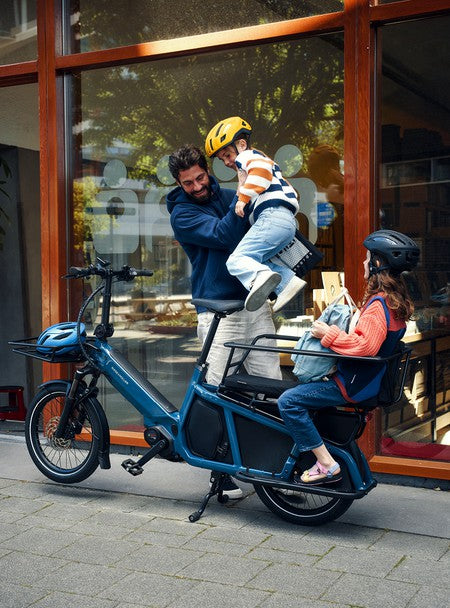 Le Riese & Müller Multitinker Easy est un vélo cargo électrique pensé pour la simplicité d’usage au quotidien. Sa plateforme arrière rallongée permet de transporter deux enfants ou un chargement conséquent, tout en conservant un format compact et très maniable. Idéal pour les trajets maison-école, les courses ou les déplacements urbains, il s’adresse à celles et ceux qui recherchent un cargo intuitif, stable et accessible.