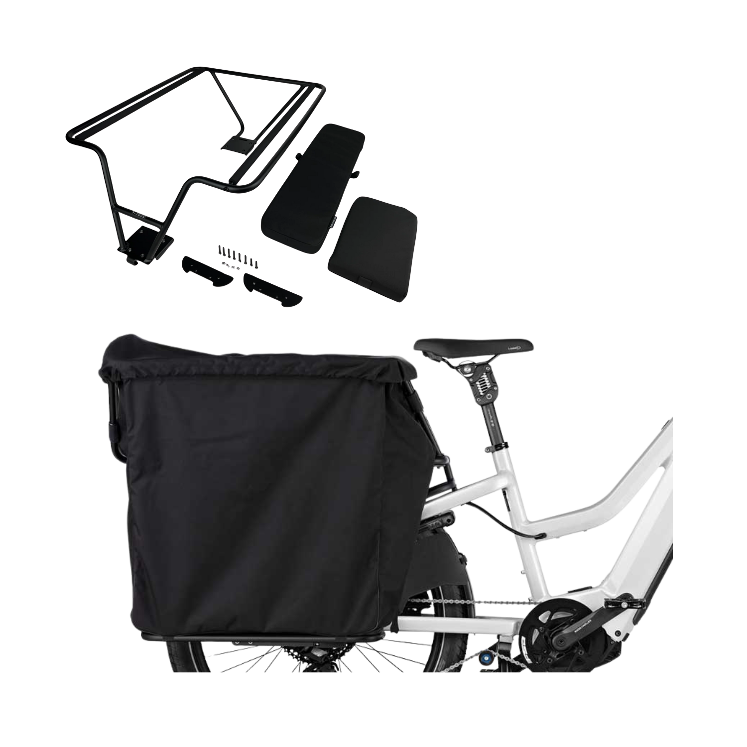 Cette combinaison assure à la fois sécurité et confort : les enfants sont bien maintenus, protégés des chocs latéraux et des contacts accidentels avec la roue arrière. Le kit est parfaitement intégré au design du Multicharger et se combine idéalement avec un coussin passager ou un siège enfant type Thule/Yepp.