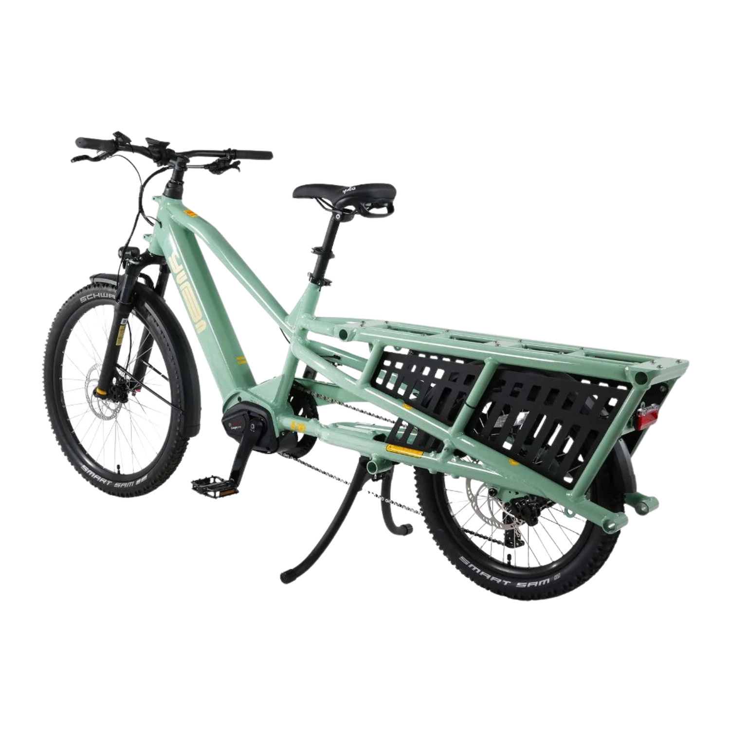 Le Spicy Curry + embarque le moteur Bosch Cargo Line, spécifiquement conçu pour les vélos cargos, ainsi qu’une batterie PowerPack de 500 Wh. Il offre une assistance puissante et constante, même en côte ou à pleine charge. Avec ses freins à disque hydrauliques, sa transmission Shimano Deore 10 vitesses et ses pneus Schwalbe Big Ben Plus, il assure sécurité, confort et performance au quotidien.
