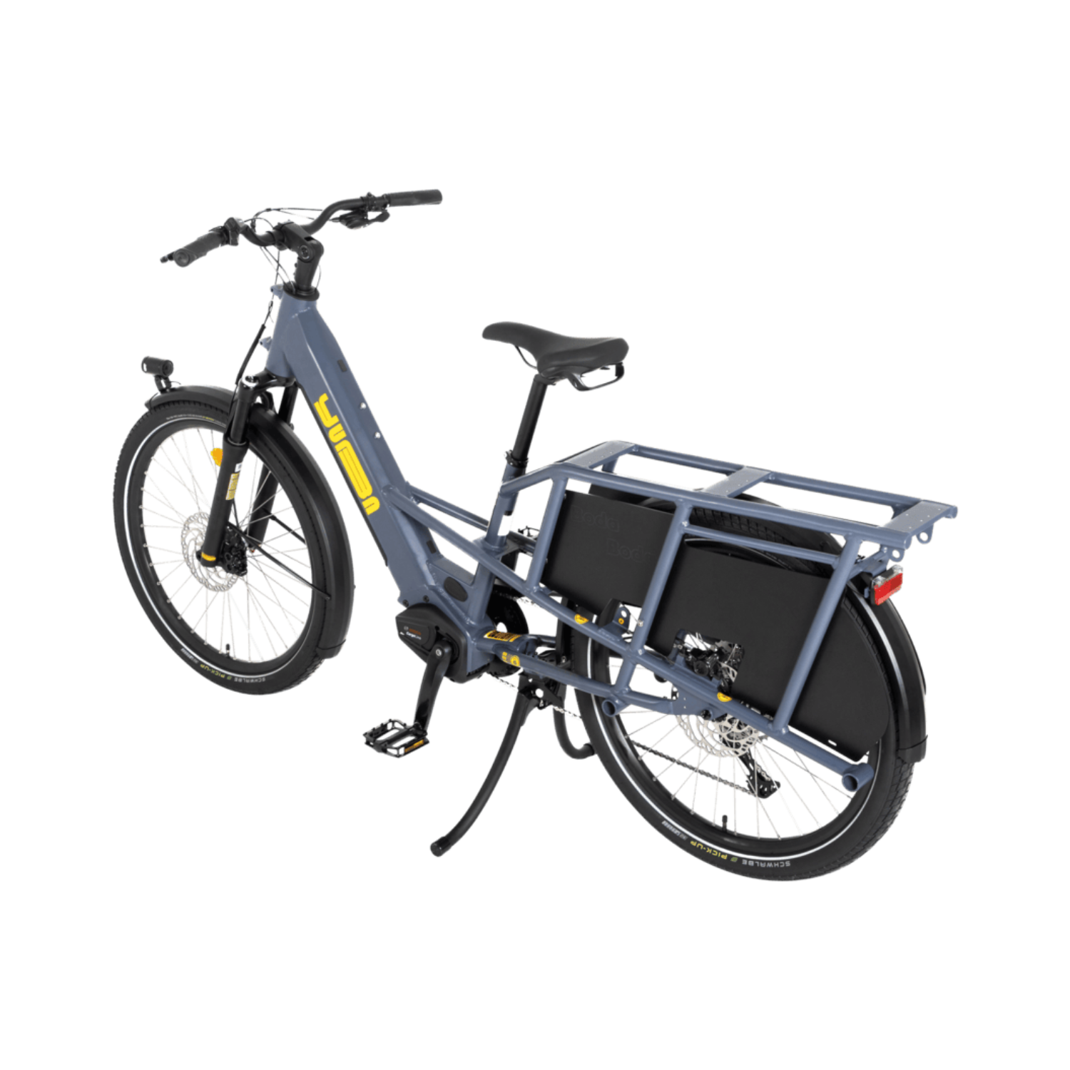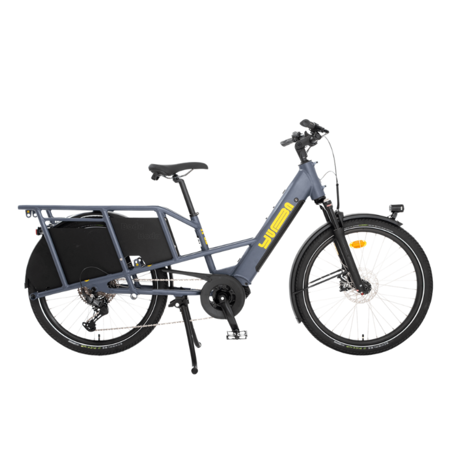 Le Boda Boda de Yuba est un vélo cargo électrique compact, conçu pour la ville. Avec un cadre aluminium disponible en version step-over ou step-through, une capacité de charge de 200 kg, et un format plus court que les longtails classiques, il combine maniabilité, stabilité et polyvalence.