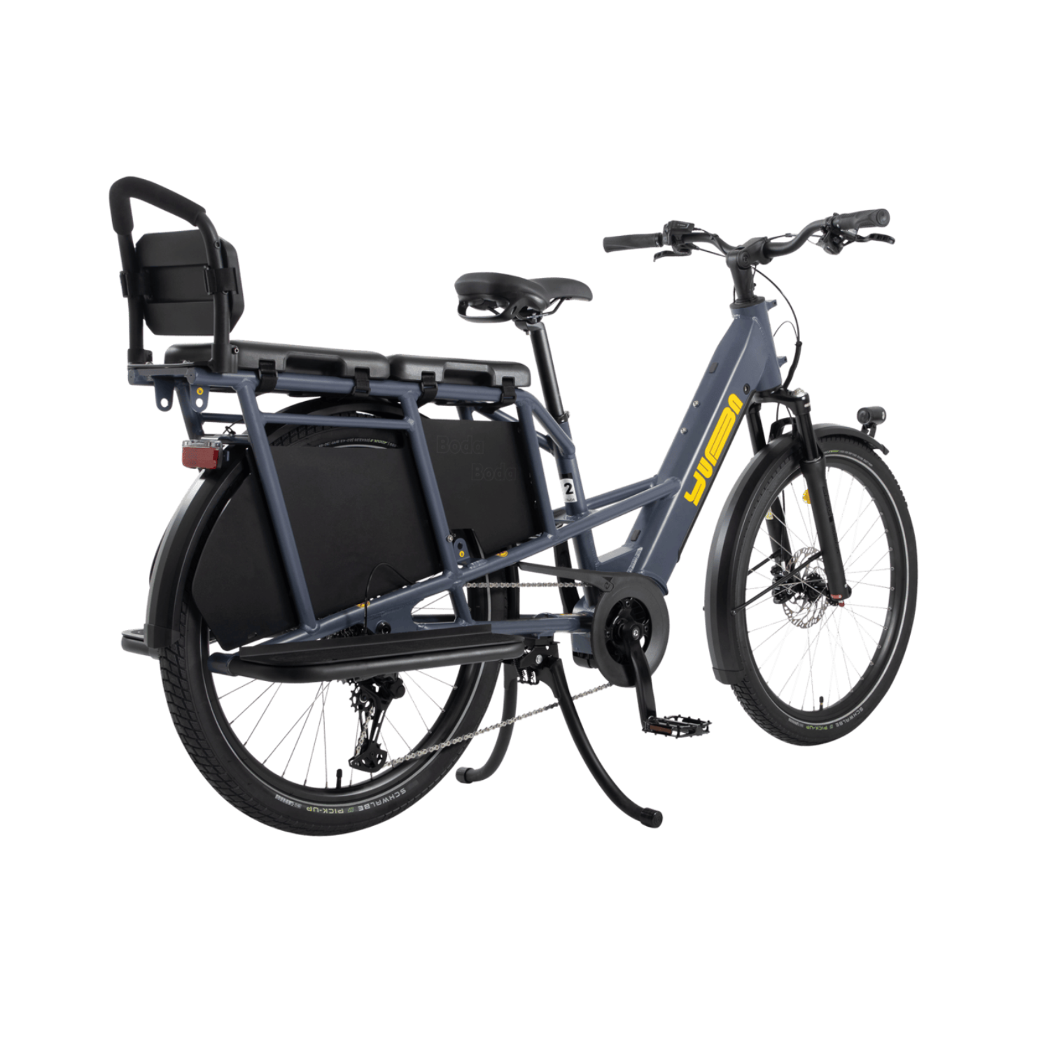 Avec son siĂšge ajustable, son guidon ergonomique, ses freins hydrauliques Magura Thirty2 et son porte-bagage arriĂšre modulable, le Boda Boda peut accueillir jusquâĂ deux enfants, un passager adulte ou tout type de chargement.