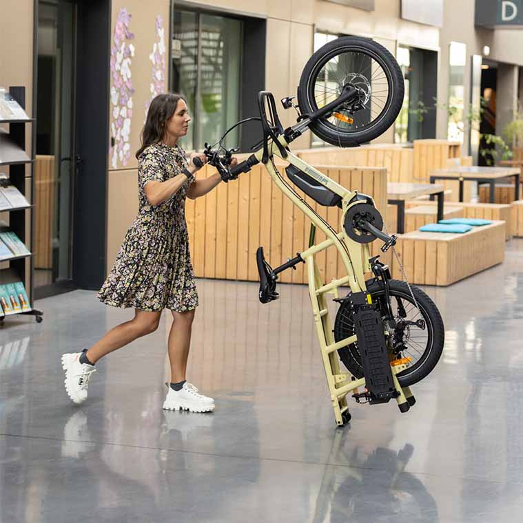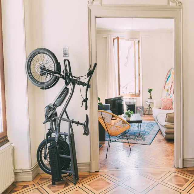 Fini lâencombrement dans lâentrĂ©e ou le local Ă vĂ©lo : il tient debout contre un mur.